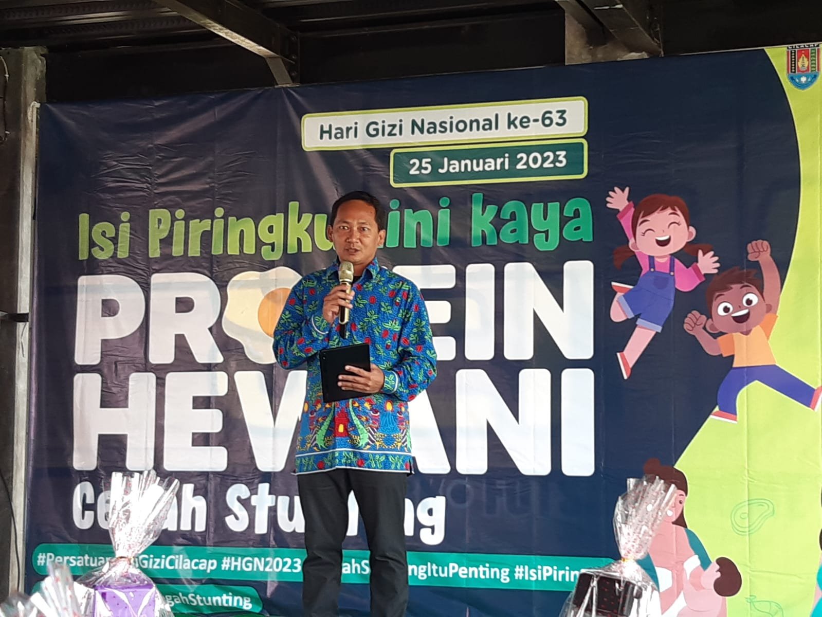 “Sesuai dengan tema HGN Ke-63 tahun 2023 ini adalah Protein Hewani Cegah Stunting, maka kegiatan HGN ini mengajak masyarakat untuk mengenal stunting dan dampak serta cara pencegahanya, ahli gizi di Cilacap diharapkan berperan aktif dalam penurunan dan penanganan kasus stunting, “, pungkas Hantari. (Juna)