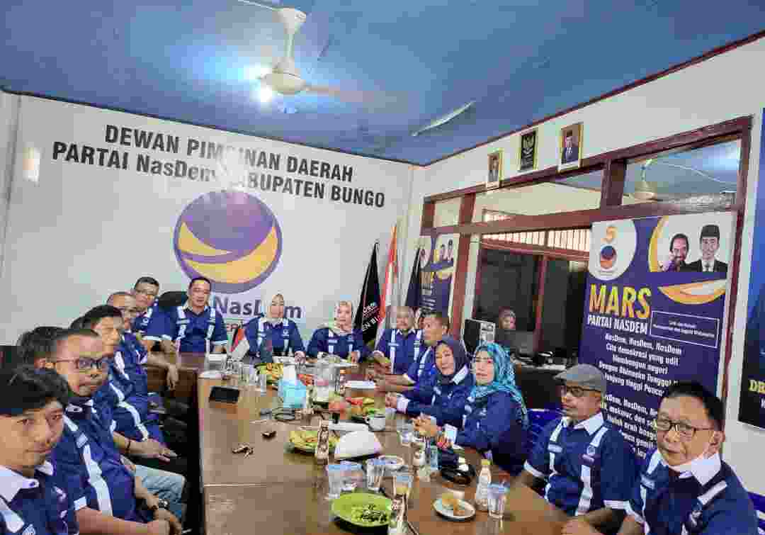 Tampak hadir pada rapat akhir ini selain Ketua DPD NasDem Bungo Jumiwan Aguza,SM beserta Sekretaris juga ada pengurus beserta anggota DPD NasDem kabupaten Bungo. (is)
