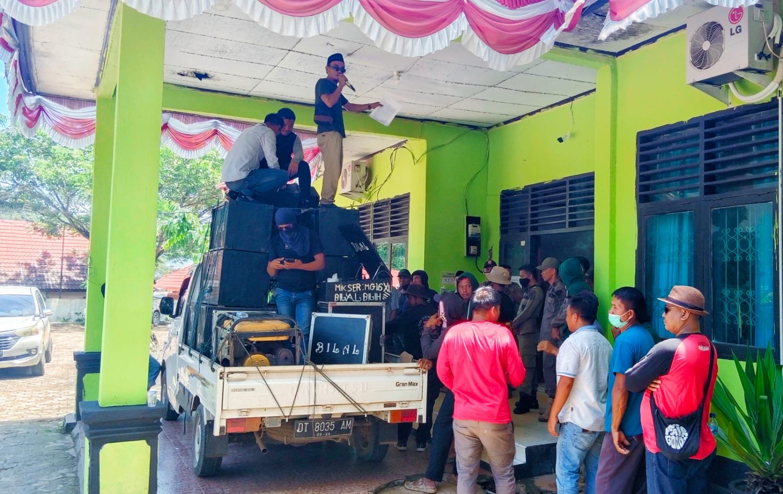 Massa aksi Kolam terlebih dahulu menyuarakan tuntutan masyarakat Andowia di Bundaran Andowia.