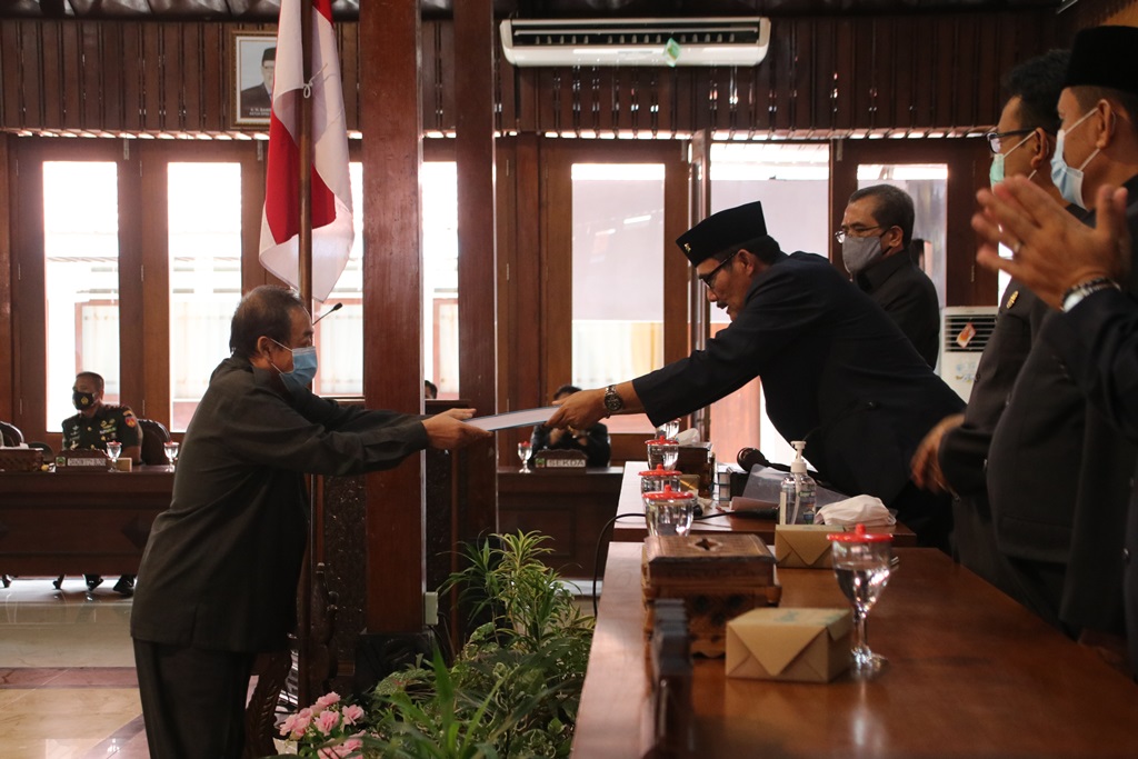 Sebelum dimintakan persetujuan dan penandatanganan berita acara antara DPRD dan Bupati Blora, disampaikan terlebih dahulu laporan oleh Bapemperda DPRD Blora yang dibacakan juru bicaranya Iwan Krismiyanto.