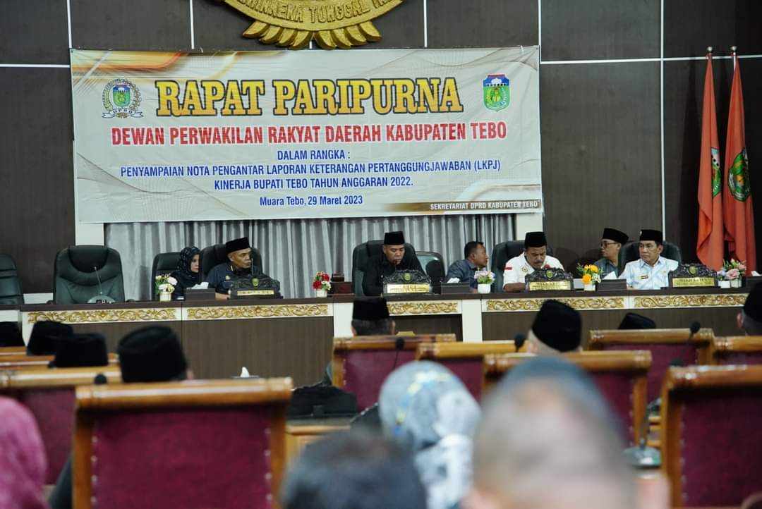 NASIONALXPOS.CO.ID, TEBO – Dewan Perwakilan Rakyat Daerah (DPRD) Kabupaten Tebo menggelar Rapat Paripurna (Rapurna) dalam rangka Penyampaian Nota Pengantar Laporan Keterangan Pertanggung jawaban (LKPj) Kinerja Bupati Tebo Tahun Anggaran 2022.