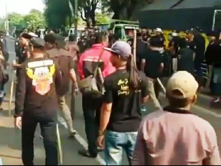 Di TKP, masing-masing anggota ormas tersebut terlihat membawa sejumlah benda tumpul seperti kayu, dan lain-lain. Beruntung bentrokan dapat dilerai personel gabungan TNI-Polri.