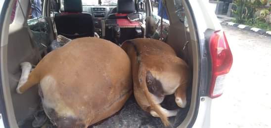 “Berdasarkan keterangan yang diperoleh 2 (Dua) ekor sapi tersebut diracun dengan menggunakan racun jenis Potas yang diberikan ke Jagung,”katanya lagi.