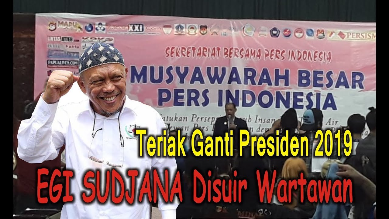 Lantaran teriak ganti Presiden 2019, Egi Sujana diusir oleh peserta Muswarah Besar (Mubes) Pers Indonesia, Selasa, 18 Desember 2018, di Gedung Sasono Utomo Taman Mini Indonesia Indah (TMII).