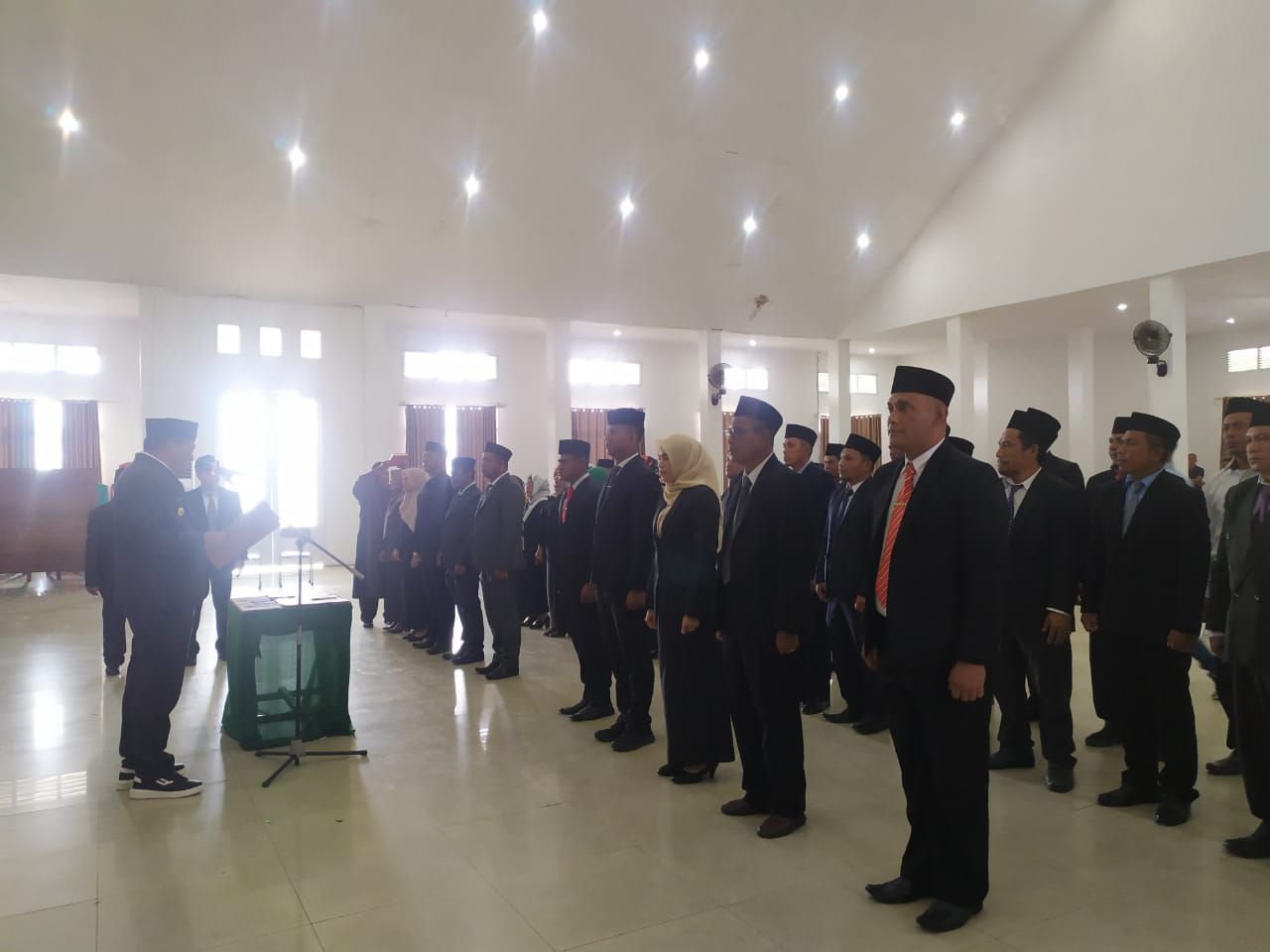 Acara pelantikan dan pengambilan sumpah jabatan 4 pejabat pimpinan tinggi pratama esalon II di lingkup pemkab Halsel yang dilaksanakan Bupati Halsel berlangsung di aula Kantor Bupati Halmahera Selatan, Jumat (27/1/2023).