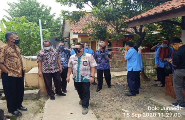 Disamping mengunjungi masyarakat peneruma bantuan MBR Perumdam Tirta Wijaya, Sekda juga membagian masker kepada warga dan memberikan imbauan kepada masyarakat tentang pentingnya menggunakan masker di tengah pandemi Covid-19. (Junaedi)