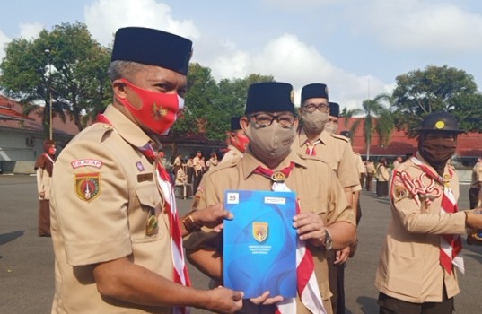 Cilacap- Penyerahan Lencana Melati dan penghargaan gerakan Pramuka Kwartir Cabang 1101 Cilacap dilaksanakan dengan upacara yang digelar di halaman pendopo Wijaya Kusuma Kabupaten Cilacap, Selasa (1/9/2020).