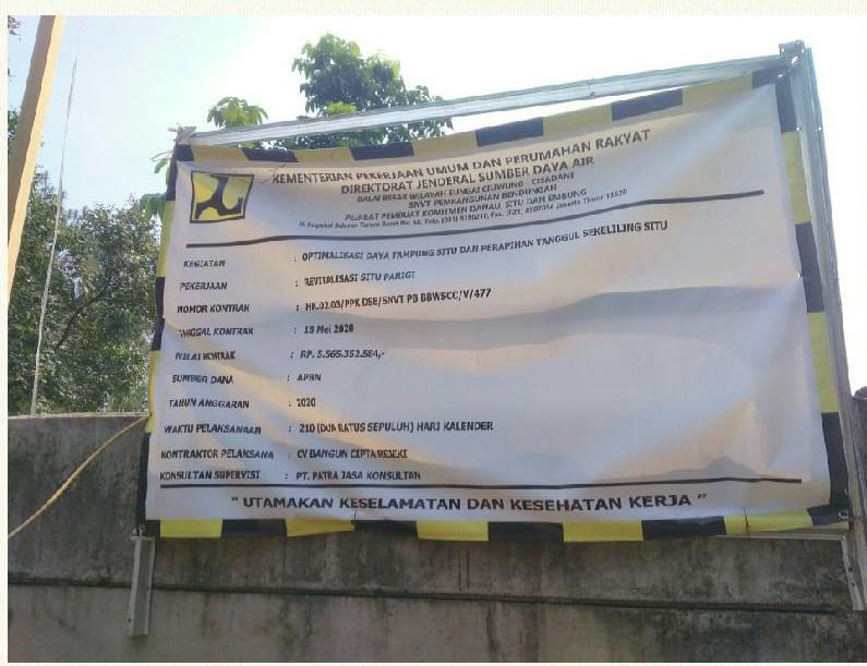 Diketahui bahwa, proyek revitalisasi Situ Parigi merupakan program Kementerian PUPR melalui Direktorat Jenderal SDA Balai Besar Wilayah Sungai Ciliwung Cisadane (BBWS- CC) menelan biaya senilai hampir 6 milyar dari APBN tahun 2020.