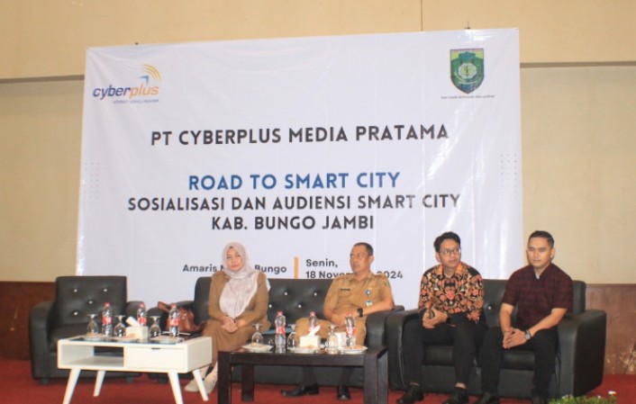 NASIONALXPOS.CO.ID, BUNGO – Pemerintah Kabupaten Bungo melalui Dinas Komunikasi Informatika dan Persandian yang bekerjasama dengan Pt Cyberplus media pratama menggelar Sosialisasi dan Audiensi tentang Smart city Kabupaten Bungo, Jambi, Senin (18/11/2024).