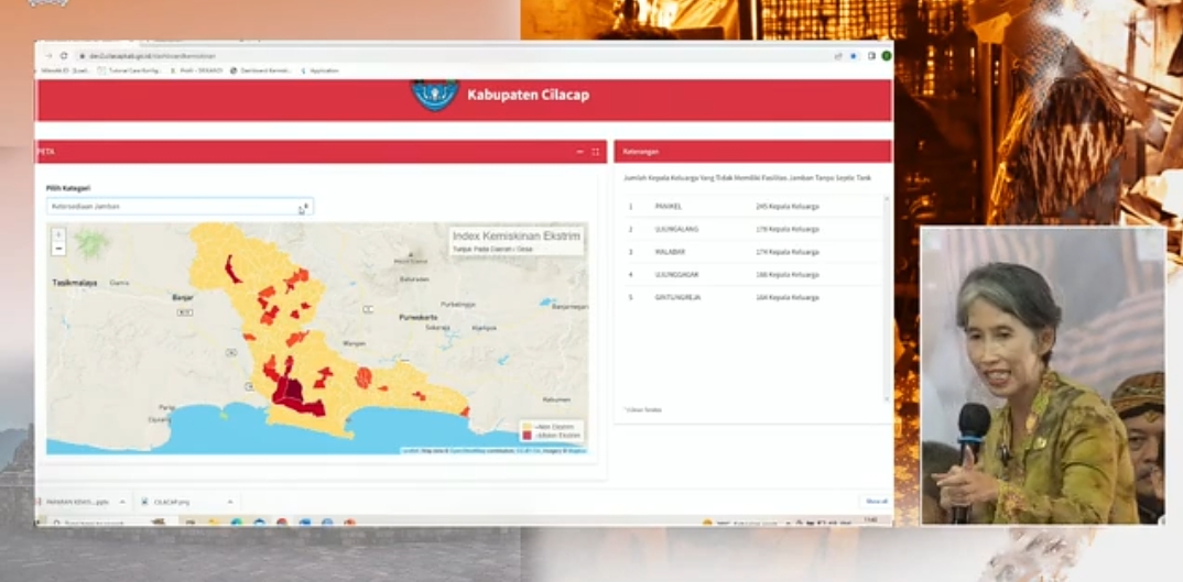 Di Kabupaten Cilacap ada 37 desa prioritas, hal itu berdasarkan rekap cel list indikator kemiskinan hasil verifikasi validasi. Dari 37 drsa dengan kemiakinan ekstrim tersebut ada sebanyak 2.219 KK yang tidak memiliki jamban, 1.545 KK belum memiliki sumber air minum, dan 7 KK belum memiliki sambungan listrik.
