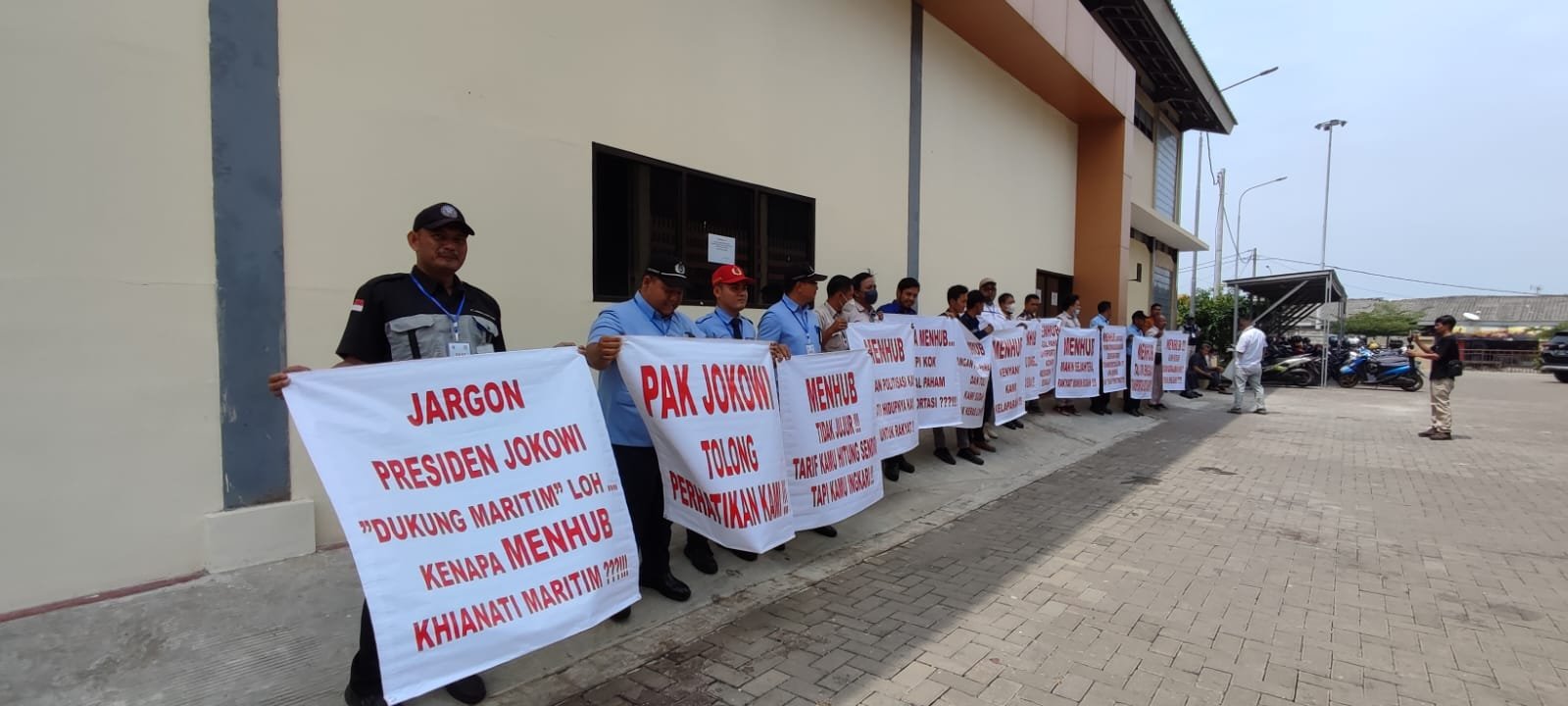 Menggelar aksi protes di halaman kantor Balai Pengelola Transportasi Darat (BPTD) Wilayah VIII Provinsi Banten, untuk menuntut penyesuaian tarif angkutan penyeberangan pasca naiknya harga bahan bakar minyak (BBM). Aksi protes dilayangkan sejumlah perusahaan kapal angkutan penyeberangan agar pemerintah segera memberlakukan penyesuaian tarif angkutan penyeberangan sebesar 11,79 persen dari tarif sebelumnya sesuai Keputusan Menteri nomor 172 tahun 2022 tentang penyesuaian tarif angkutan penyeberangan kelas ekonomi antar provinsi antar negara, lantaran para pengusaha kapal mengaku sudah tidak sanggup menanggung tingginya beban biaya operasional akibat naiknya harga BBM.