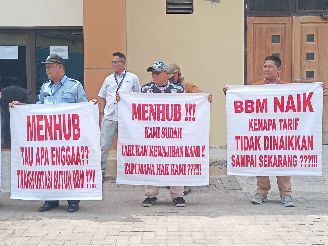 Gabungan pengusaha angkutan sungai danau dan prnyeberangan/gapasdap cabang merak Selasa 20 September 2022/ Menggelar aksi protes di kantor Balai pengelola transportasi darat/ wilayah delapan Provinsi Banten/ untuk mendesak pemerintah/ segera memberlakukan Penyesuain tarif angkutan penyeberangan yang Sudah disepakati,