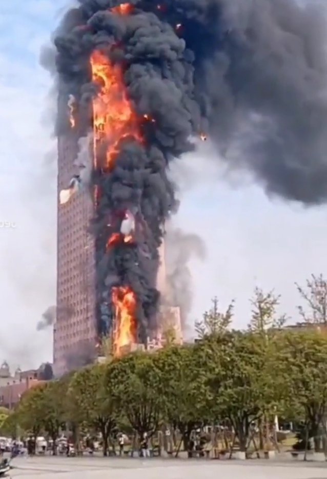 “Asap tebal mengepul dari lokasi, dan puluhan lantai terbakar dengan ganas,” laporan CCTV.