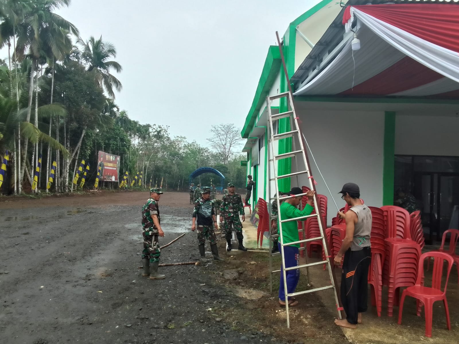 Gedung Serba Guna Poskotis Satgas TMMD Ke 117 Dibersihkan, Jelang Kedatangan Tim Wasev