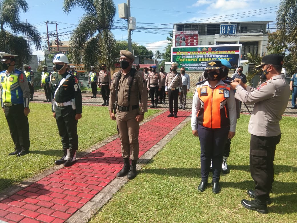 Apel gelar pasukan tersebut ditandai dengan penyematan pita tanda operasi oleh Kapolres kepada perwakilan personel TNI, Polri, Dinas Perhubungan serta Sat Pol PP.