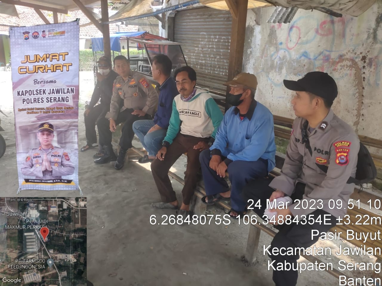 NASIONALXPOS.CO.ID, SERANG – Kapolsek Jawilan Iptu Dirga Abriawan,.S.Tr.K,.S.I.K,. Melalui Kanit Binmas Ipda A Rifai mendengarkan aspirasi masyarakat melalui program ‘Jumat Curhat’ di Kampung Wudulan, Desa Pasir buyut, Kecamatan Jawilan, Kabupaten Serang, Jumat (24/3/2023).