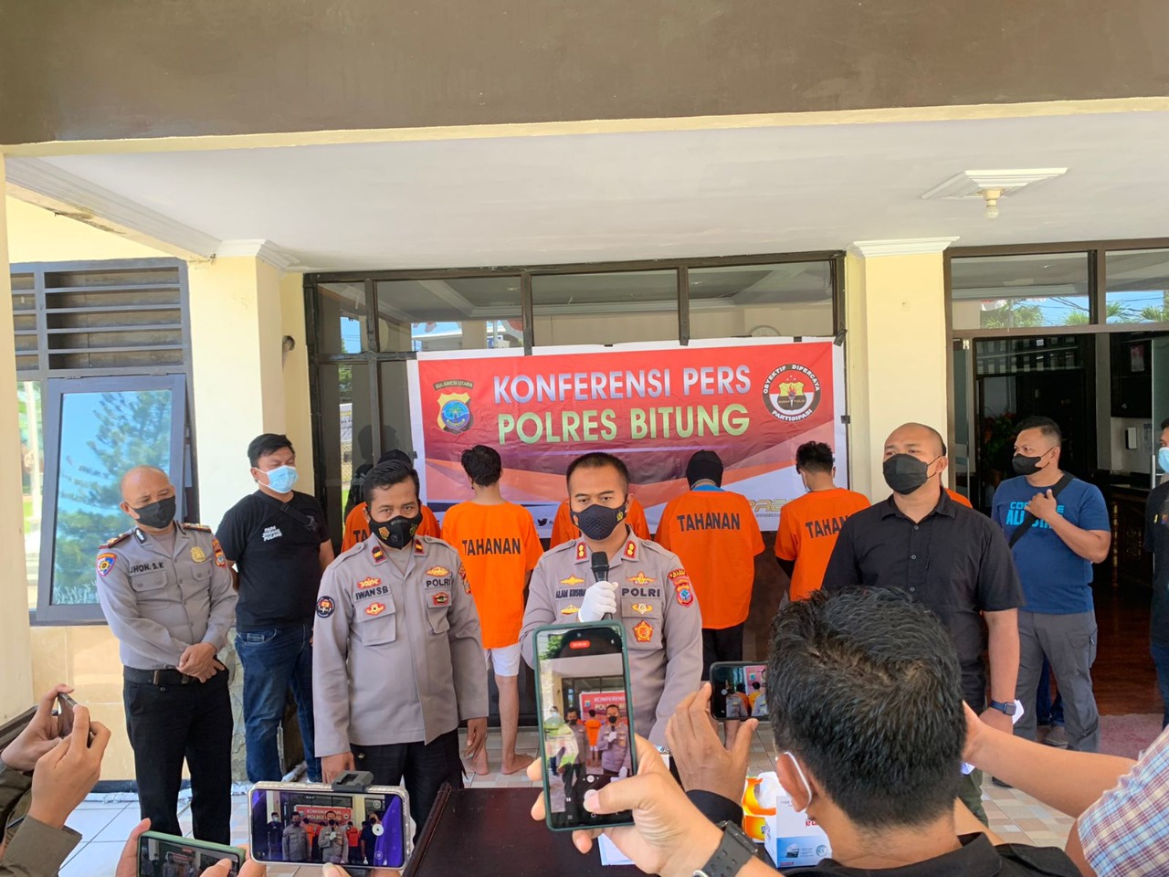 Konferensi pers yang mengungkap tindak pidana kasus curanmor dipimpin langsung oleh Kapolres Bitung, AKBP Alam Kusuma S. Irawan, S.H., S.I.K., M.H, yang menghadirkan terduga pelaku Jamal Tahabu alias Jamal (24) warga Kelurahan Bitung Barat Dua Kecamatan Maesa Kota Bitung, yang juga merupakan residivis Kasus Curanmor pada tahun 2019 lalu.