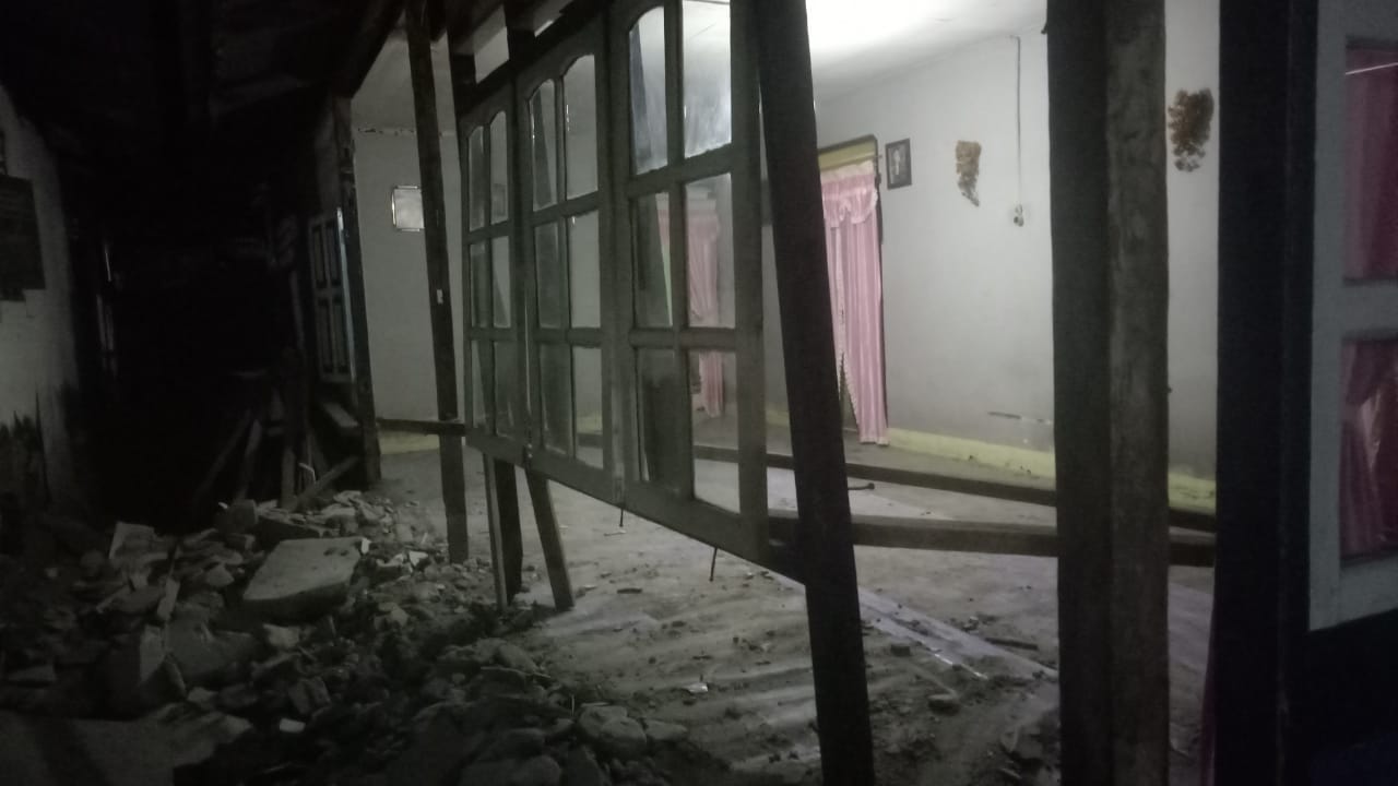 Gempa 4,7 magnitudo yang berada di kedalaman 10 km, koordinat: 0,68 LS-127,51 BT. 10 km Tenggara Labuha Maluku Utara itu merobohkan tembok rumah bagian ruang tamu Nurlela.