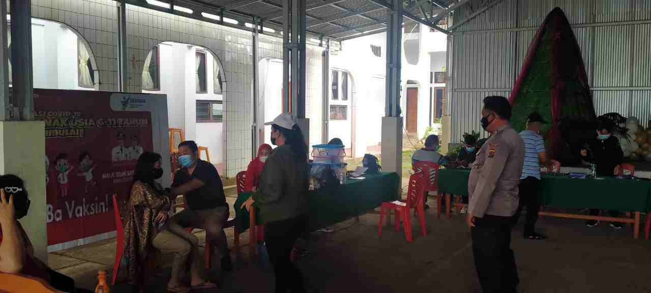 Menindaklanjuti arahan serta petunjuk Kapolres Minahasa, AKBP. Tommy Bambang Souissa S.I.K., untuk melakukan pendampingan pada setiap pelaksanaan kegitan vaksinasi, Polsek Kawangkoan melakukan pendampingan pada pelaksanaan kegiatan vaksinasi di 2 (dua) tempat berbeda, yakni di Gereja GMIM Imanuel Kinali dan Pukesmas Kawangkoan, Jum’at (04/02/2022) yang dimulai sekira pukul (09:00) Wita.