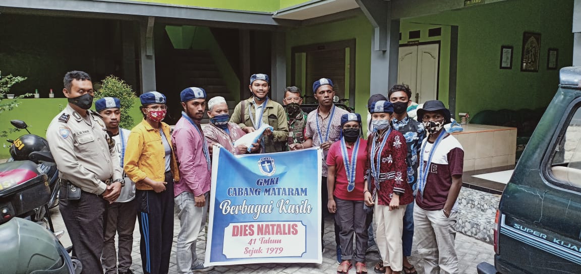 NasionalXpos.co.id, Mataram – Gerakan Mahasiswa Kristen Indonesia ( GMKI ) Cabang Mataram melakukan bakti sosial berupa pemberian Sembako kepada Anak Yatim Piatu dan Fakir Miskin pada Selasa 28 Juli 2020.
