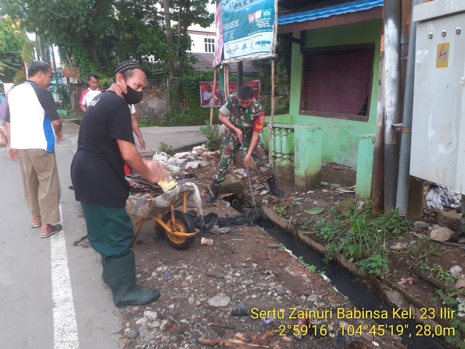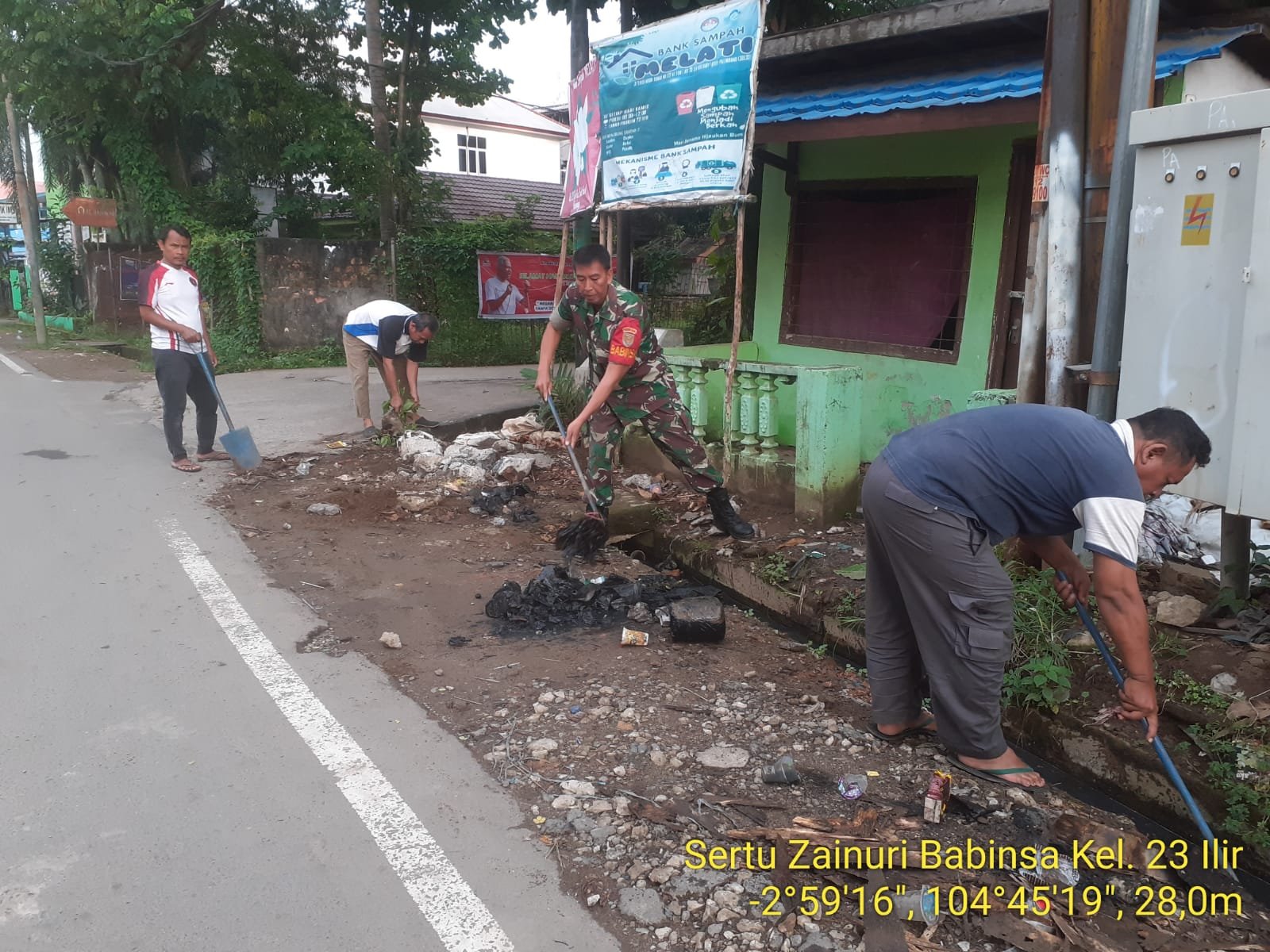 Danramil 418-02/Pakjo Kapten Arm Zainal Arifin, melalui Sertu Zainuri memgatakan, dalam kegiatan gotong ini, kita bersama-sama Aparatur Kelurahan 23 Ilir dan warga bersama-sama bergotong royong membersihkan sampah didalam selokan.