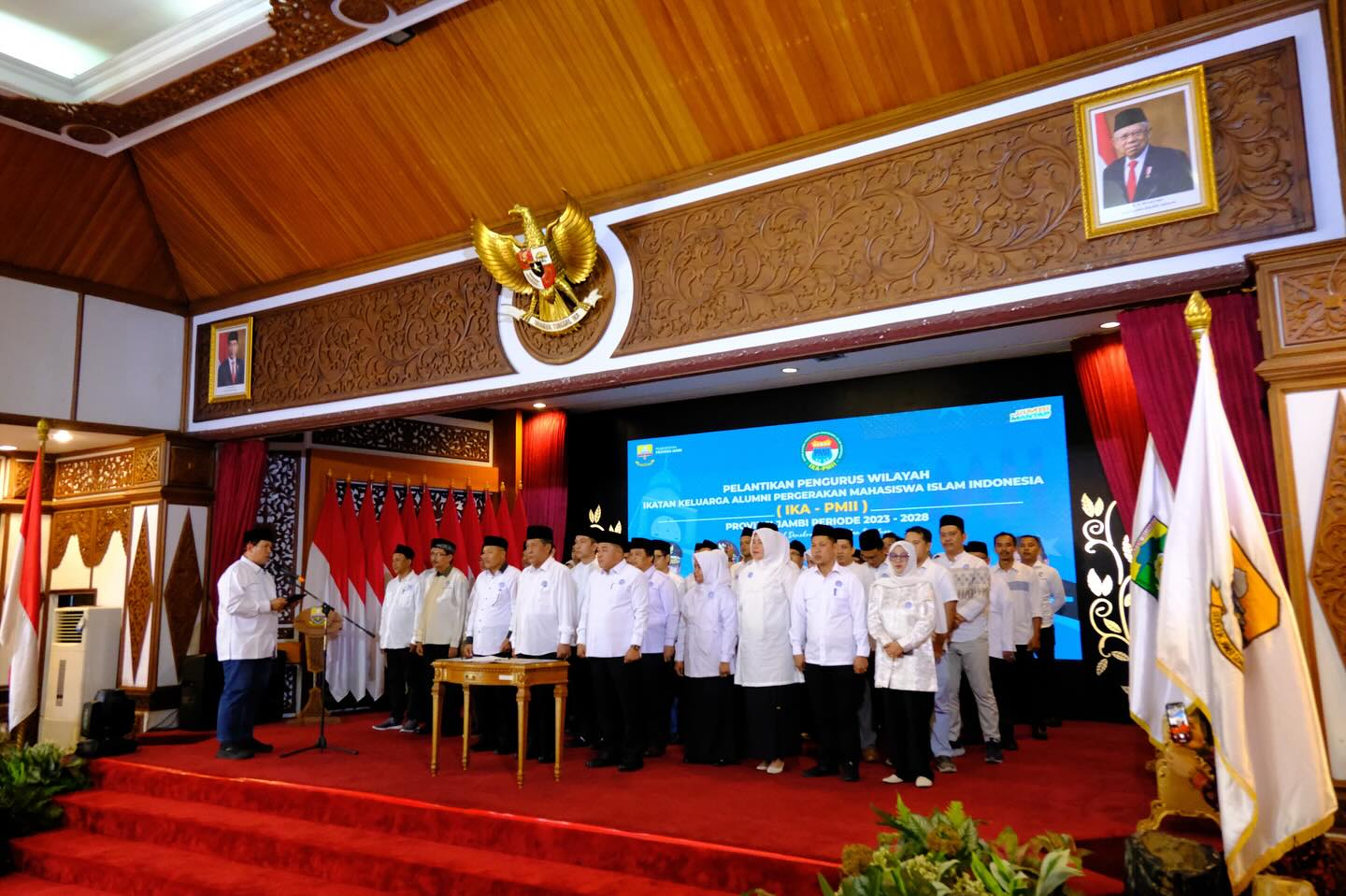 NASIONALXPOS.CO.ID, JAMBI – Gubernur Jambi Dr. H. Al Haris, S.Sos., MH mengatakan bahwa Pergerakan Mahasiswa Islam Indonesia (PMII) Provinsi Jambi sukses mencetak kader dalam berbagai sektor di Provinsi Jambi. Hal ini disampaikannya pada Pelantikan Pengurus Wilayah Ikatan Keluarga Alumni Pergerakan Mahasiswa Islam Indonesia (PW IKA PMII) Provinsi Jambi, bertempat di Auditorium Rumah Dinas Gubernur Jambi, Sabtu (27/01/2024).