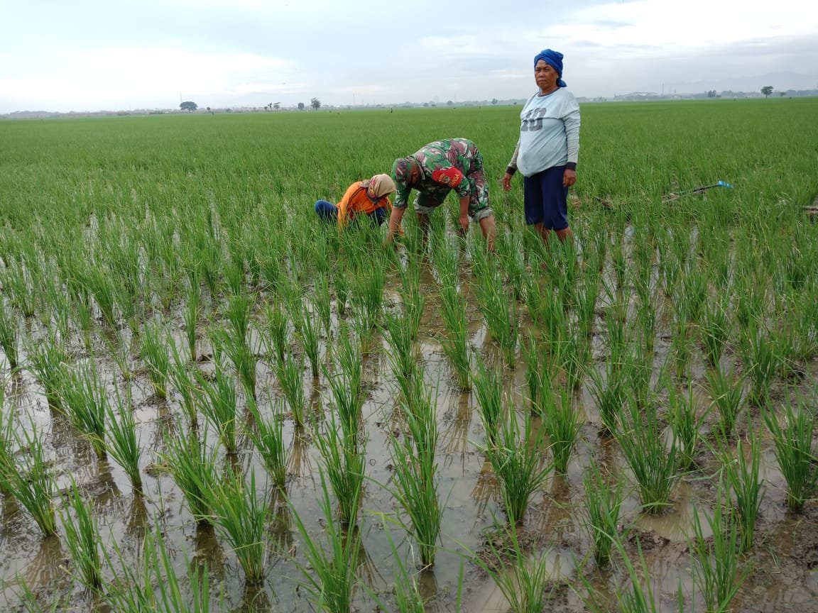 NASIONALXPOS.CO.ID. BEKASI – Dalam rangka menyukseskan swasembada pangan nasional, Babinsa Koramil13/Kedungwaringin membantu petani membersihkan rumput liar, Selasa (5/1/2021).