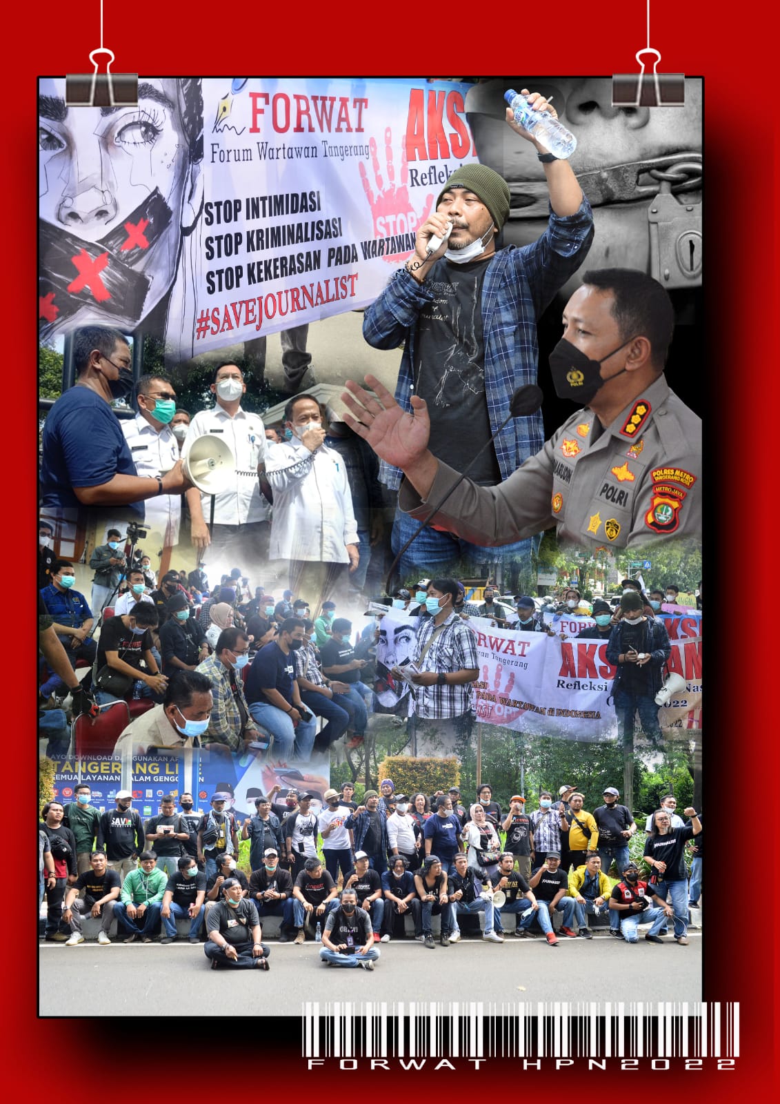 Aksinya para wartawan, itu meminta kepada pihak kepolisian dan pemerintah Kota Tangerang untuk menghentikan Intimidasi, Kekerasan dan Kriminalisasi terhadap profesi wartawan.
