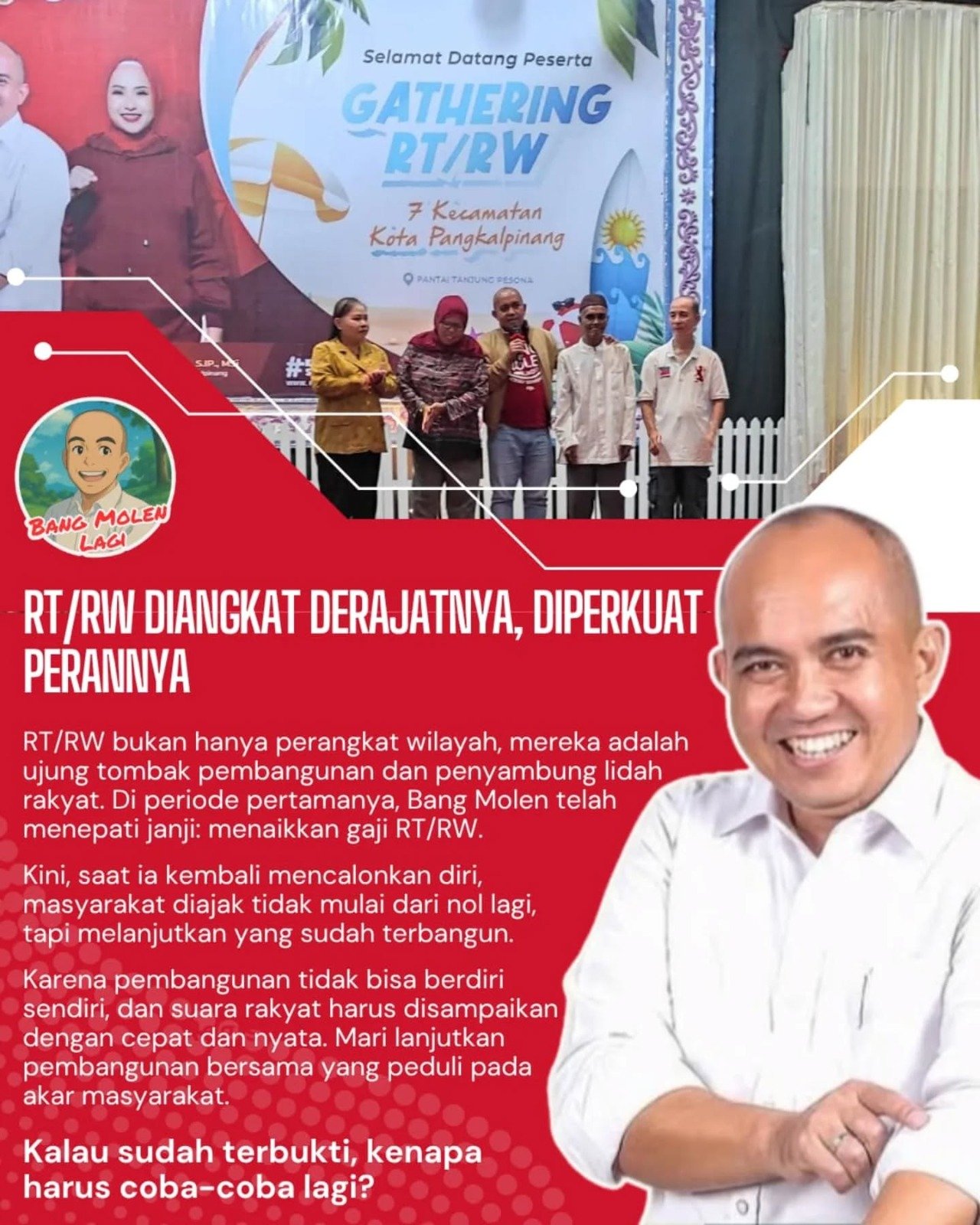 NASIONALXPOS.CO.ID, PANGKALPINANG – Komitmen memperjuangkan kesejahteraan rakyat kecil terus menjadi prioritas utama Maulan Aklil (Molen), Wali Kota Pangkalpinang periode 2018–2023, yang kini kembali maju dalam Pilkada 2024 bersama Zeki Yamani melalui pasangan HARMONI (Harapan Molen-Zeki Yamani).