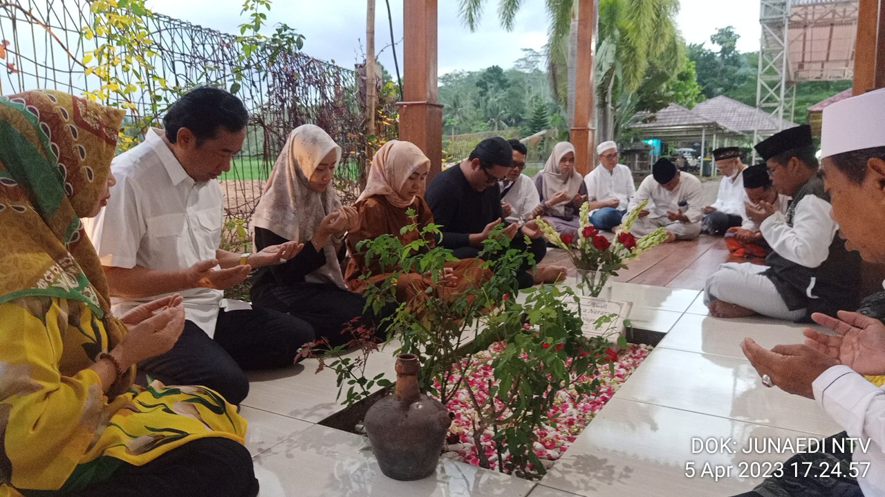 Usai memberikan santunan, kegiatan Haul ke 2 almarhumah Athaya Jiva Nararya, keluarga Tatto Suwarto Pamuji bersama para alim ulama menggelar doa bersama di tempat pemakaman Athaya Jiva Nararya yang berada persisi di sisi barat Masjid yang terletak di lokasi Taman Tatto Ciguling Kecamatan Majenang. (Junaedi)