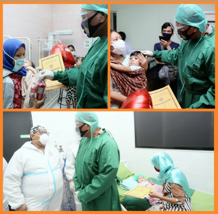 Tak lupa, Kapolda Sumut juga memberi tali asih berupa uang tunai, mainan dan balon pasien dan keluarganya