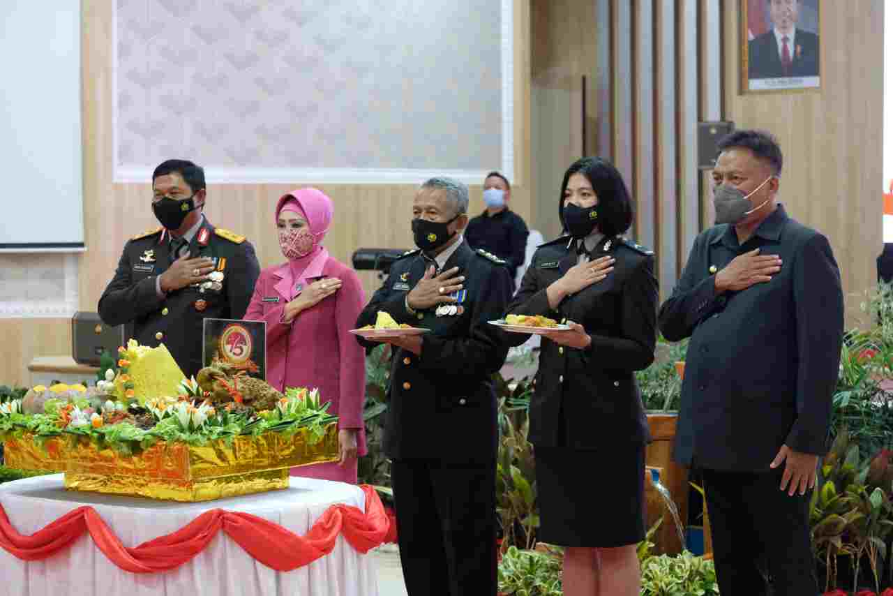 NASIONALXPOS.CO.ID, MANADO – Polda Sulawesi Utara (Sulut) menggelar acara syukuran secara sederhana dalam rangka memperingati Hari Ulang Tahun (HUT) Bhayangkara ke-75, Kamis (01/07/2021) siang, di ruang Catur Prasetya Mapolda.