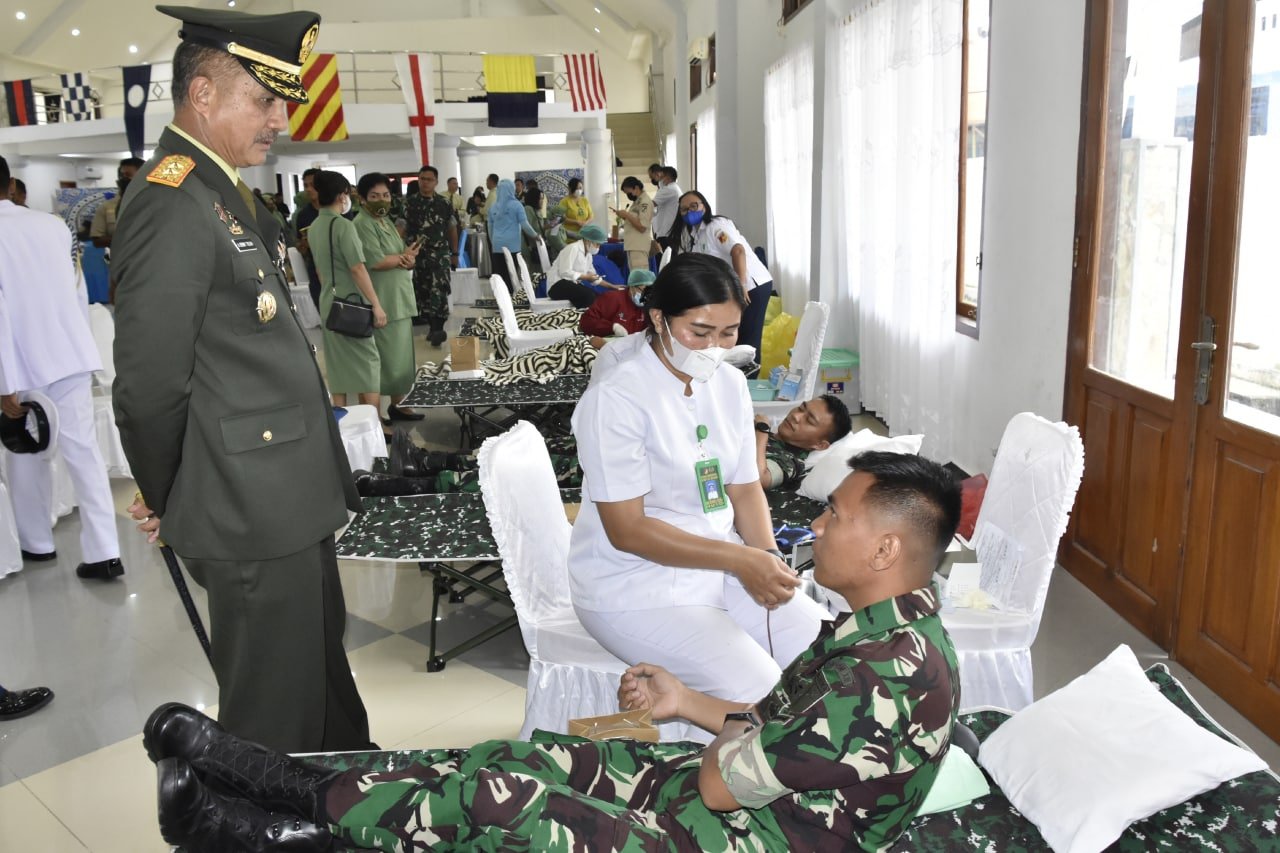 Pangdam XIII/Merdeka Mayjen TNI Denny Tuejeh saat meninjau pelaksanaan donor darah mengatakan, disamping rangkaian HUT ke-77, kegiatan donor darah ini juga dimaksudkan untuk menumbuhkan rasa setia kawan,