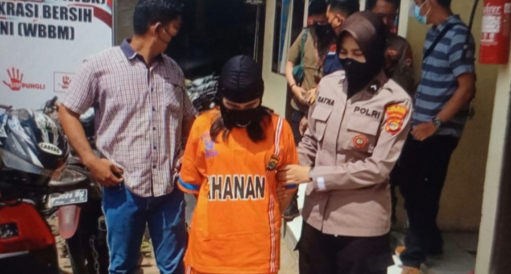 Dengan wajah tertutup sebo dan berbaju orange, ibu muda berinisial LS (24), warga Desa Tiyuh Margo Mulyo, Kecamatan Tumijajar, Tulang Bawang Barat, Lampung, digiring ke aula Mapolres Tulang Bawang Barat Lampung. LS tega menghabisi nyawa anak tirinya yang masih berumur dua tahun di rumah suaminya dan ditangkap polisi tanpa perlawanan.