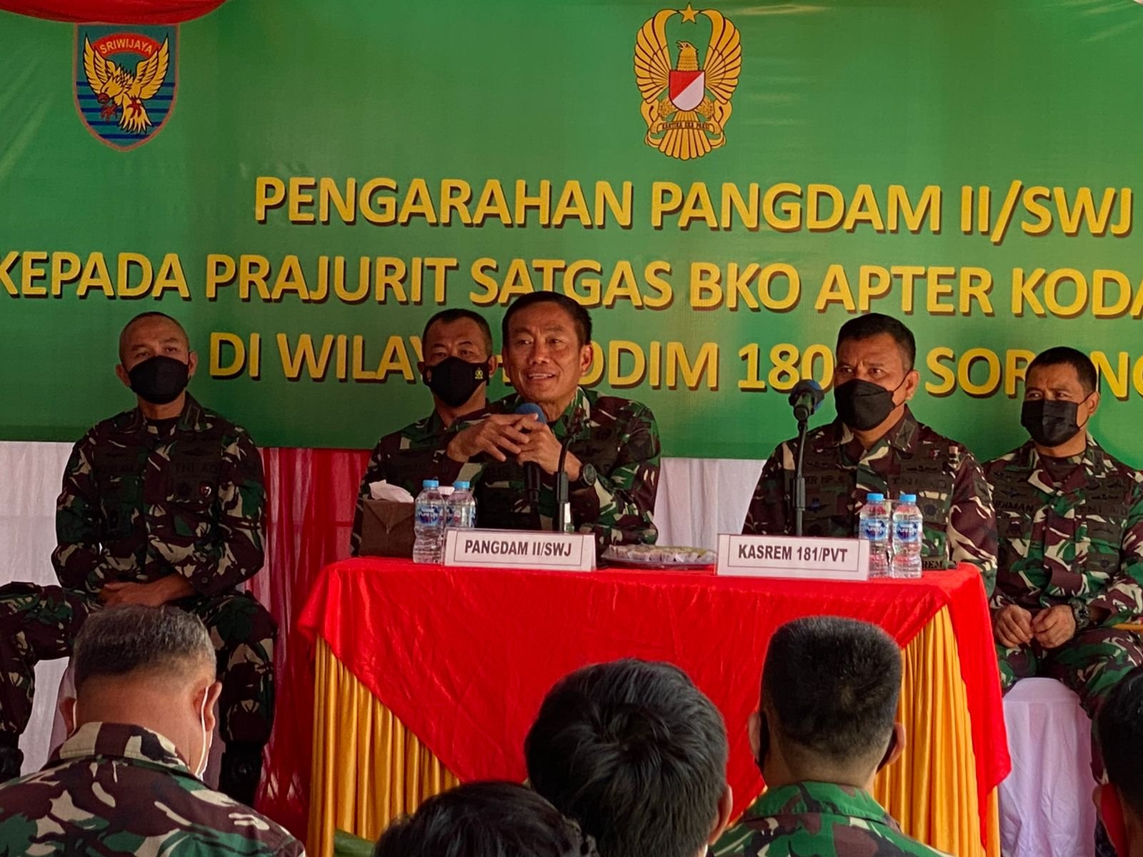 Selain dalam rangka kegiatan Pengawasan dan Evaluasi (Wasev), kunjungan Pangdam II/Swj ini untuk berdialog secara langsung dengan personel Satgas BKO Apter Kodam II/Swj. Selain itu juga merupakan wujud kepedulian dan perhatian pimpinan kepada anak buahnya yang sedang mengemban amanah melaksanakan tugas operasi.