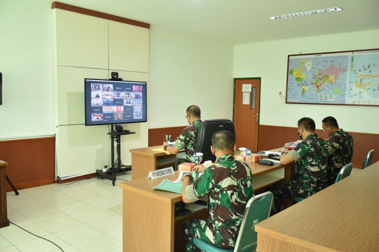 NASIONALXPOS.CO.ID, MANADO – Pangdam XIII/Merdeka Mayjen TNI A. Denny Tuejeh mengikuti Video Conference (Vicon) bersama seluruh Panglima Kotama TNI, yang dipimpin langsung Jenderal TNI Andika Perkasa, S.E., M.A, Sabtu (2/4/2022) di ruang Puskodalops Kodam XIII/Merdeka.