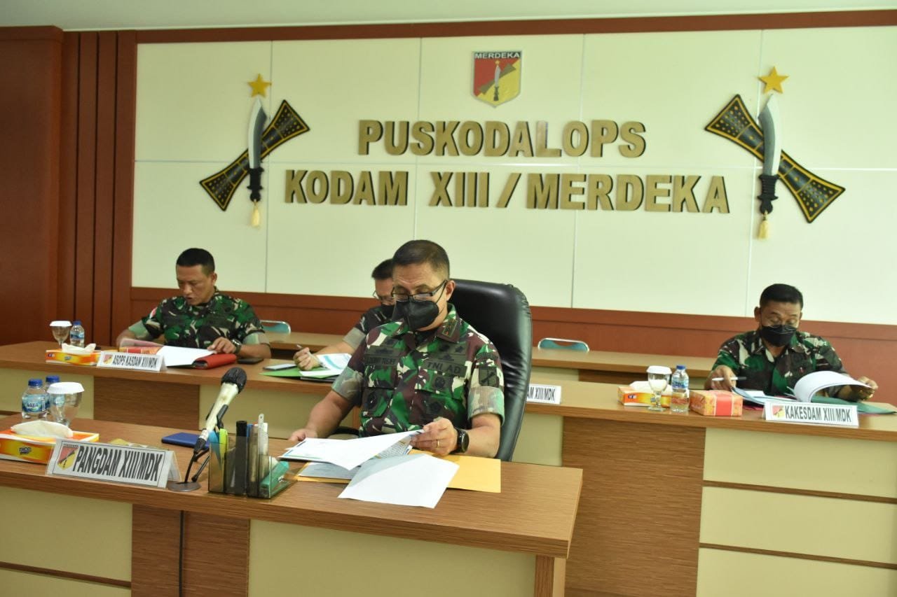 Sementara, Kapendam XIII/Merdeka Kolonel Inf Jhonson M. Sitorus dalam keterangannya mengatakan agenda vicon yang dipimpin langsung Panglima TNI Jenderal TNI Andika Perkasa adalah imbauan kepada seluruh jajaran Panglima Kotama agar memberikan fasilitas vaksinasi selama bulan suci Ramadhan 1443 H, sehingga dalam pelaksanaan percepatan vaksinasi bisa tercapai dengan baik.