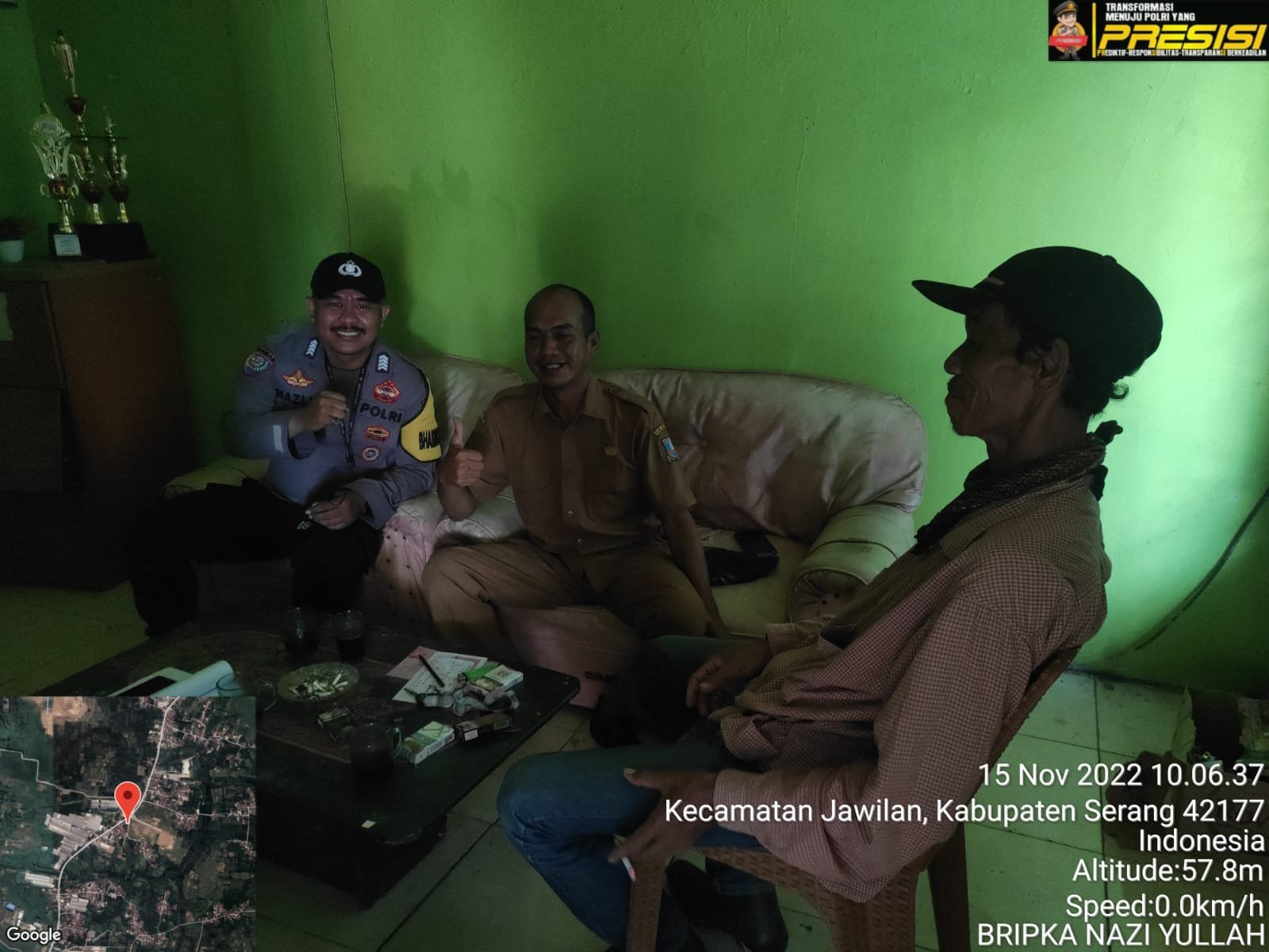 Adapun tujuan sambang kantor desa guna menyampaikan pesan kamtibmas pada Kades dan perangkat desa yang merupakan ujung tombak desa,kegiatan ini sudah menjadi rutinitas yang dilakukan Bhabinkamtibmas sebagai bentuk kepedulian terhadap masyarakat Sekaligus sebagai ajang silaturahmi Anggota Polri dengan Masyarakat diwalayah hukum Polres Serang.