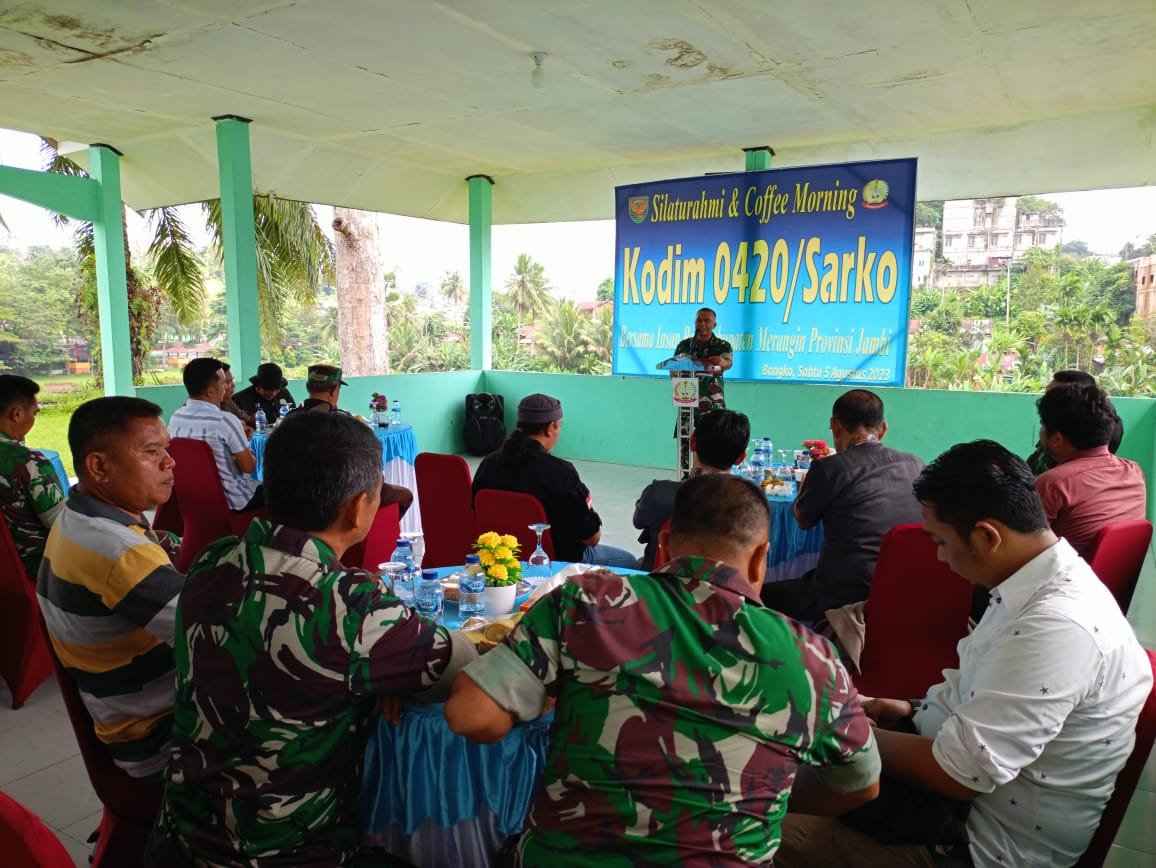 Tatap muka silaturahmi ini, wujud sinergi melalui acara coffee morning Kodim 0420/Sarko dengan Insan Pers/Media berlangsung selama dua hari. Jum’at kemarin berlangsung di wilayah Kabupaten Sarolangun dan hari ini hari kedua berlangsung acara coffee morning Kodim 0420/Sarko dengan insan pers/media wilayah Kabupaten Merangin. (*)
