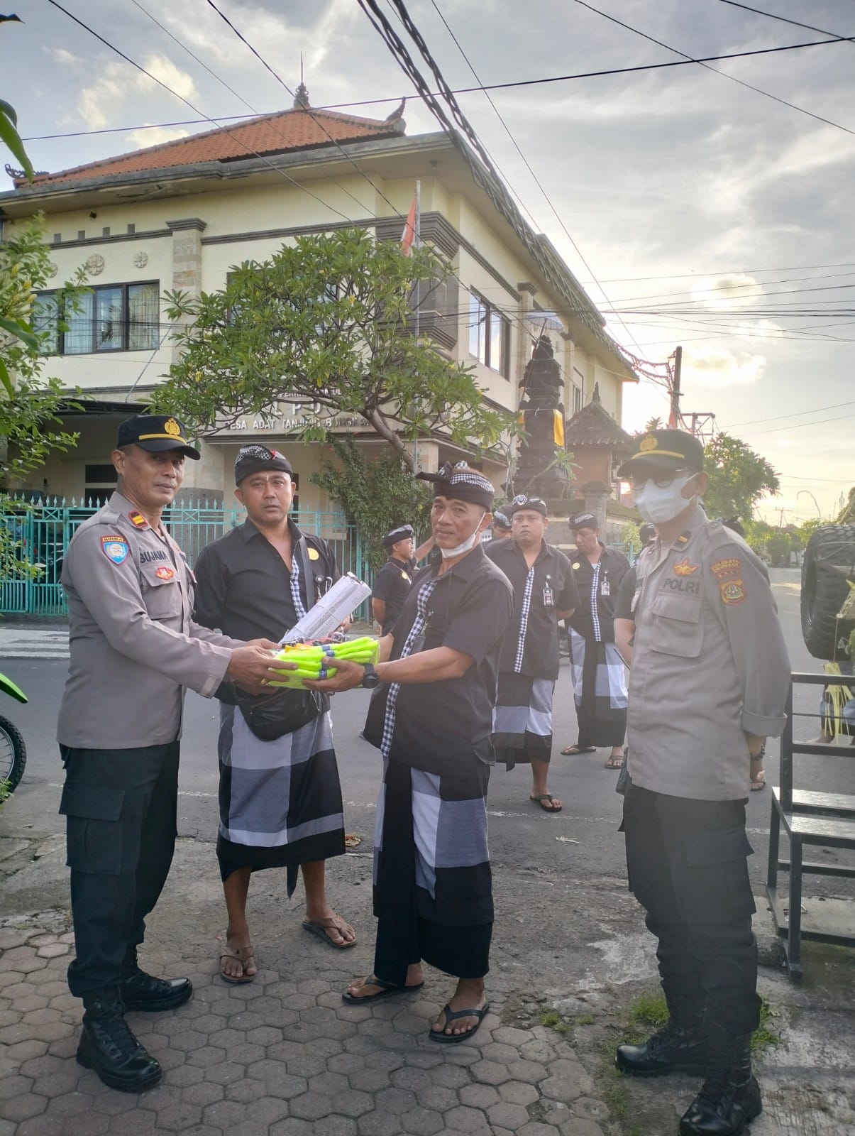 Sarana kontak yang diserahkan berupa 4 senter lalin, 4 Pluit, 4 rompi, 4 borgol. Dengan penyerahan sarana Kontak tersebut diharapkan dapat mempererat tali silahturahmi dan kerjasama antara keamanan Desa, masyarakat dan Polri serta mendukung kegiatan operasional pecalang di lapangan khususnya di wilayah desa sumerta kelod.