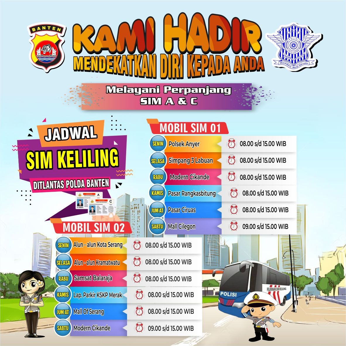 Berikut dibawah ini jadwal SIM KELILING Polda Banten :