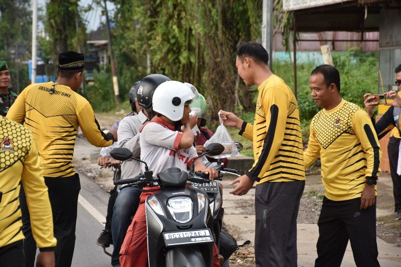 NASIONALXPOS.CO.ID, PALEMBANG – Di bulan Suci Ramadhan penuh berkah ini, personel TNI AD dari Jasdam II/Sriwijaya berbagi kebaikan kepada masyarakat dengan memberikan makanan dan minuman untuk berbuka puasa (Takjil).