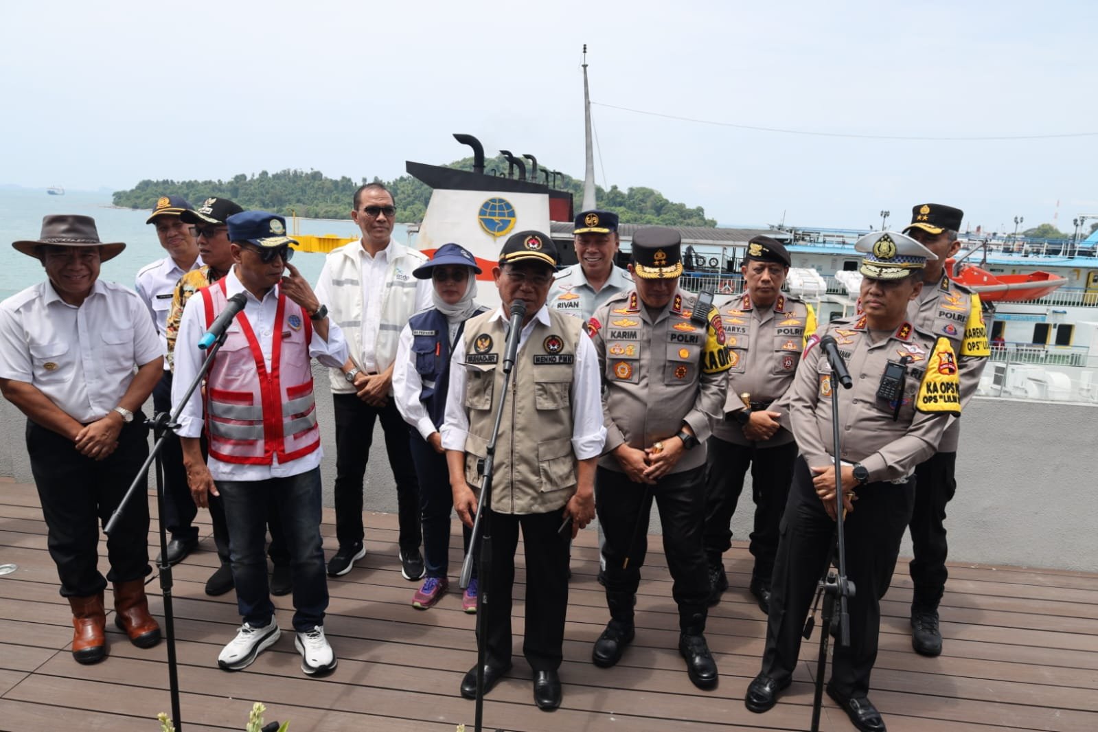 NASIONALXPOS.CO.ID, CILEGON – Jelang Pengamanan Natal 2023 dan Tahun Baru 2024 (Nataru), Menko PMK didampingi Mentri Perhubungan dan Kakorlantas Polri melakukan pengecekan kesiapan Operasi Lilin 2023-2024 di Pelabuhan penyeberangan Merak-Bakauheni, Dermaga 6 Eksekutif pada Sabtu (23/12)