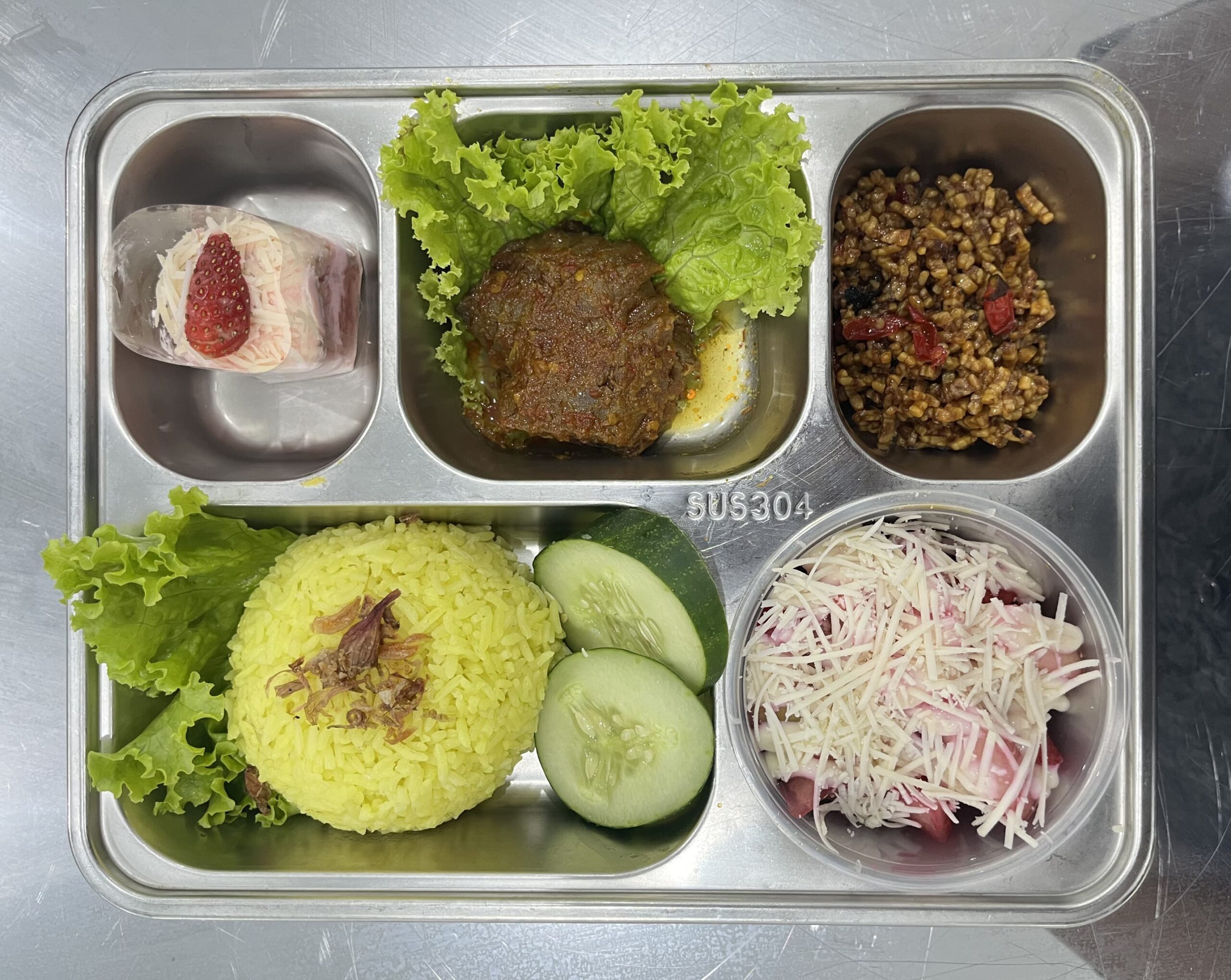Menariknya, di hari perdana operasional, dapur tersebut langsung menyajikan menu rendang daging sapi untuk para penerima manfaat.