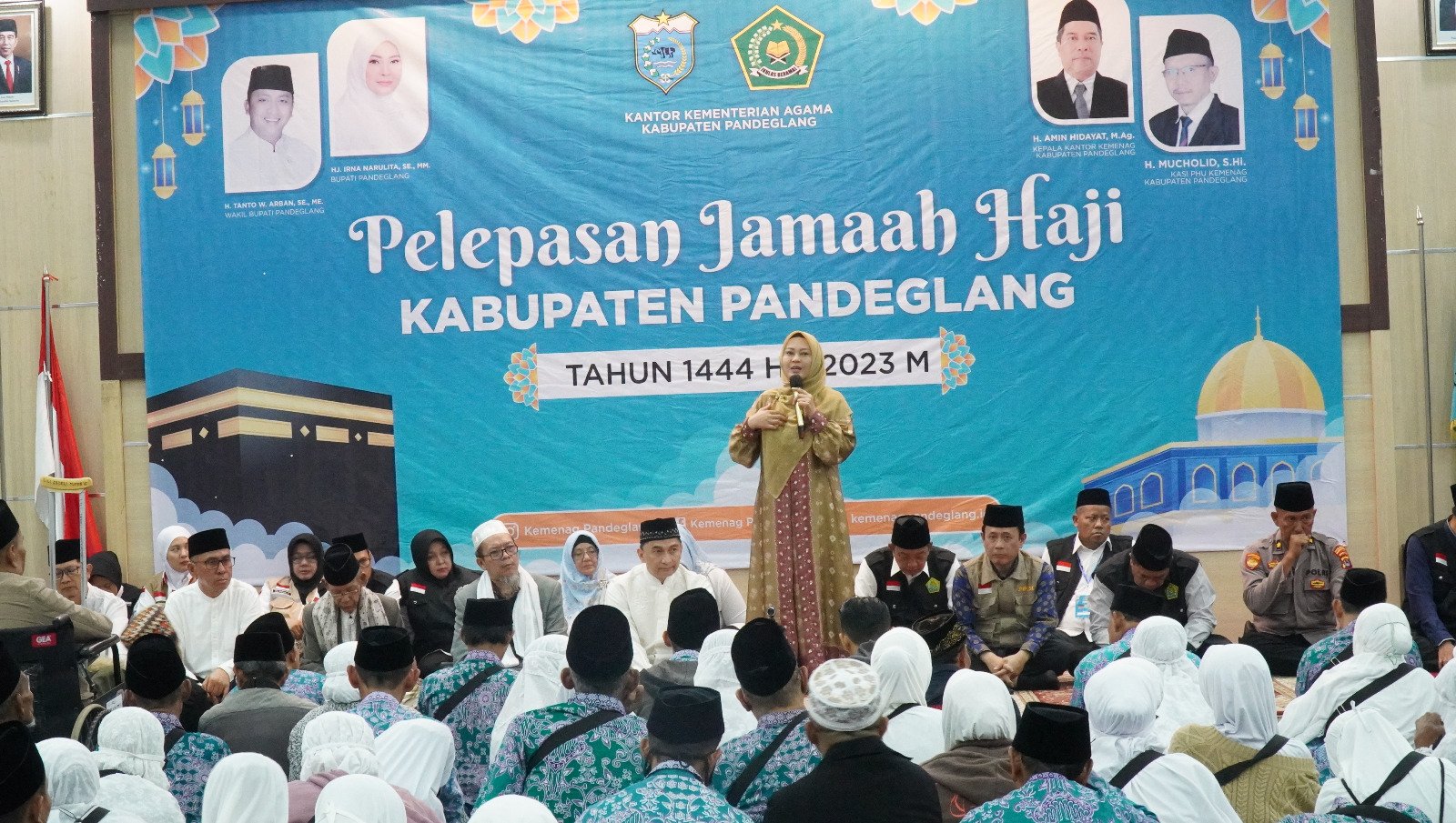 “Gunakanlah kesempatan yang baik ini untuk ibadah, bapak dan ibu yang berangkat hari ini adalah pilihan, “demikian dikatakan Bupati Pandeglang Irna Narulita saat melepas jemaah haji klompok terbang (kloter) 16 di Pendopo Pandeglang, Minggu Dinihari (28/5/2023).