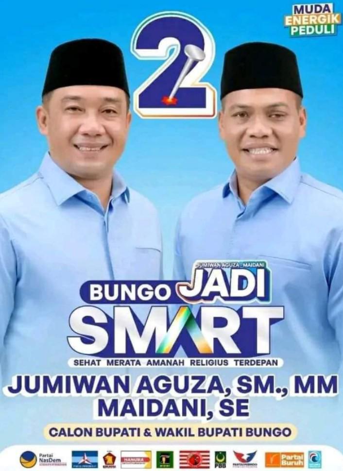 NASIONALXPOS.CO.ID, BUNGO – Tulus untuk mengabdi pada masyarakat, itulah kata yang tepat untuk pasangan calon Bupati dan Wakil Bupati Bungo Jumiwan Aguza, S.M., M.M – Maidani, M.M