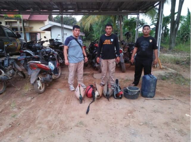 Petugas hanya mengamankan barang bukti yang diduga sebagai tindak pidana perjudian jenis sabung ayam yang tertinggal di TKP.