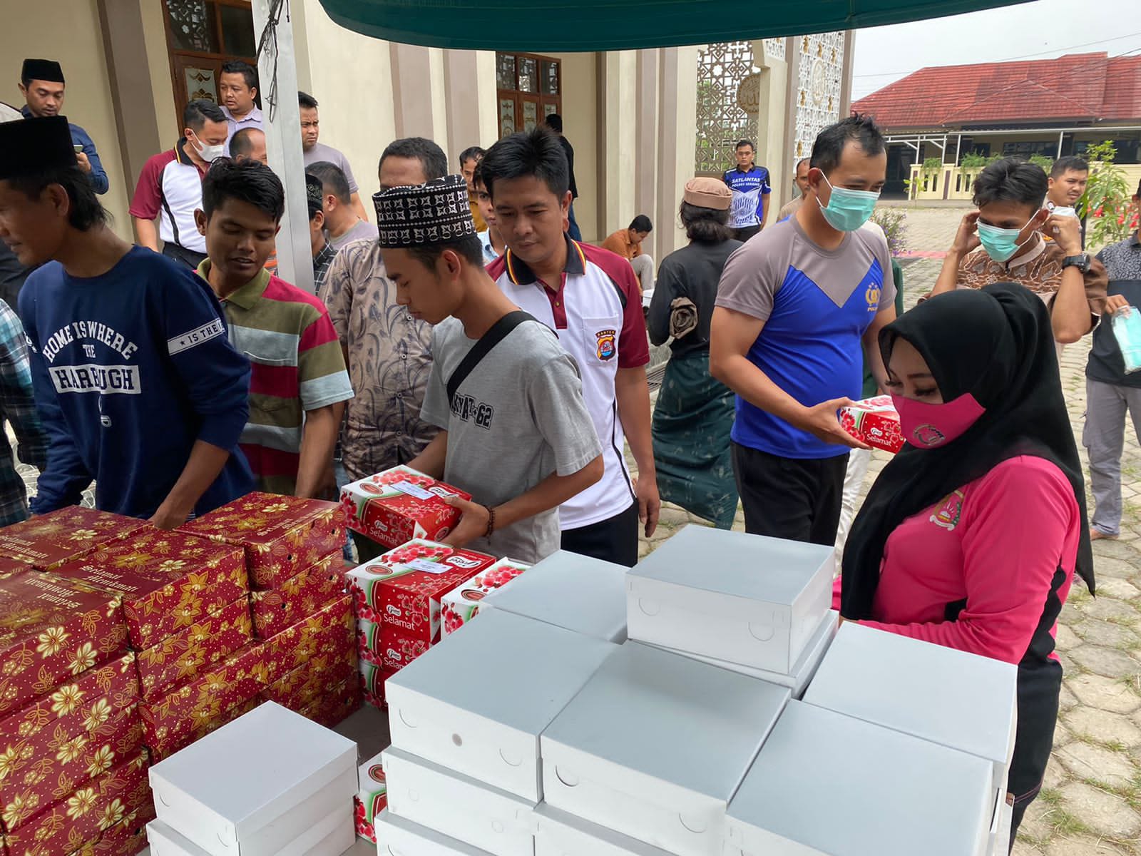 Untuk kali ini Warung Jumat Barokah Polres Serang membagikan sebanyak 80 nasi kotak kepada warga masyarakat yang telah selesai melaksanakan Sholat Jumat di Masjid As-Salam Polres Serang.
