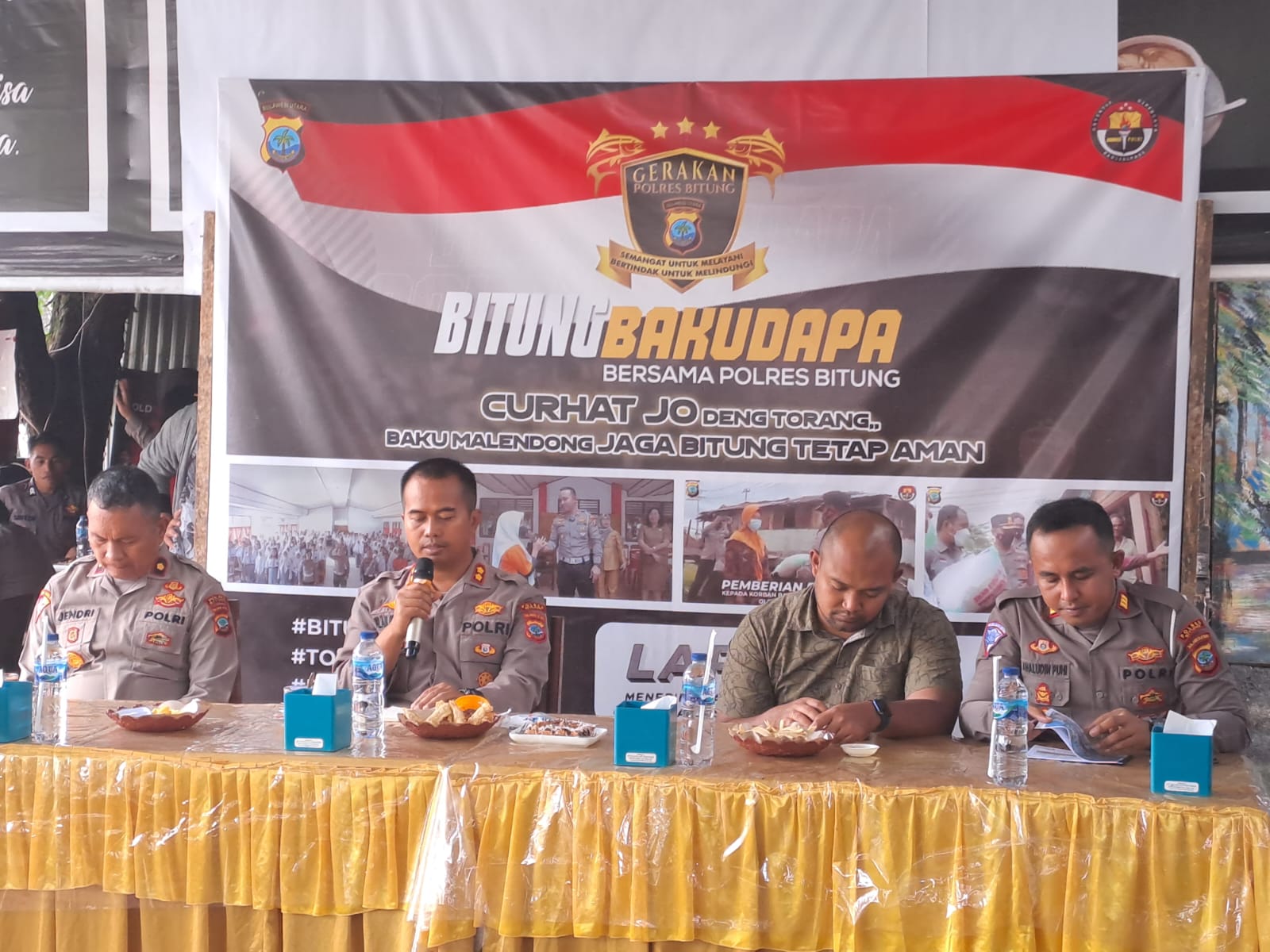 mari kita panjatkan bersyukur kehadiran Tuhan Yang Maha Kuasa karena kita selalu diberikan kesehatan keselamatan rahmat dan hidayahnya kemudian sengaja kita melaksanakan kegiatan Jumat curhat kalau di wilayah Bitung kita kasih nama Bitung Baku Dapa.