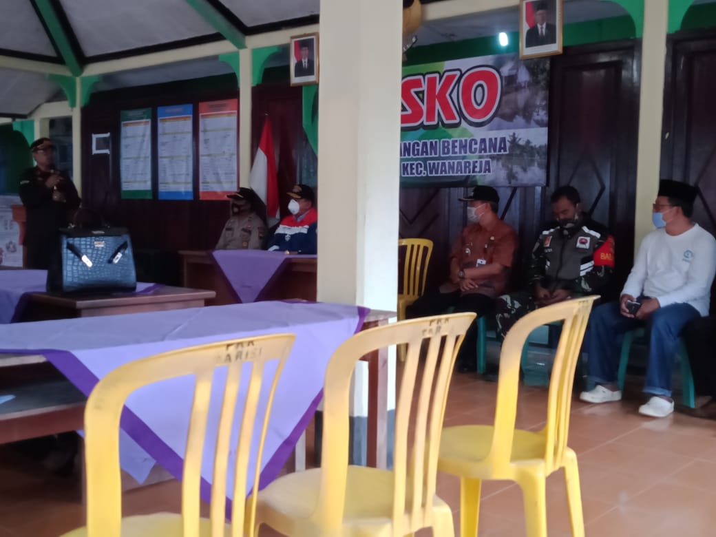 Kedatangan Tri Ari Mulyanto disambut Forkompimcam Wanareja, tampak Camat Wanareja Drs. Muhammada Najib, perwakilan dari Koramil, dan Polsek Wanareja.